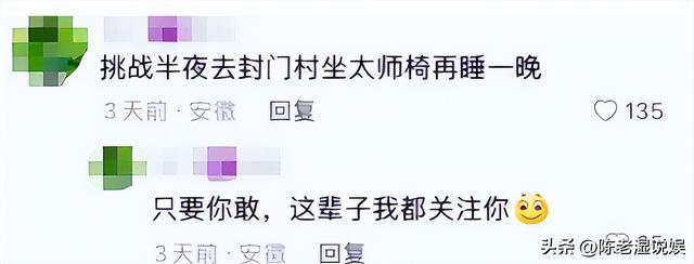 “挑战去封门村,半夜坐在村里的太师椅上,再睡一晚试试。”