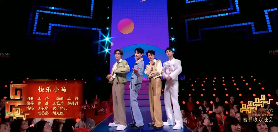春晚的主舞台并没有太多变化,官宣时就突出了观众席背面,多了一个显著的“副舞台”。前三个节目里,十位美女演唱的《立春》和陈小春易洋千玺等人表演的节目,还有主持人报幕,都是从这个小舞台开始。
