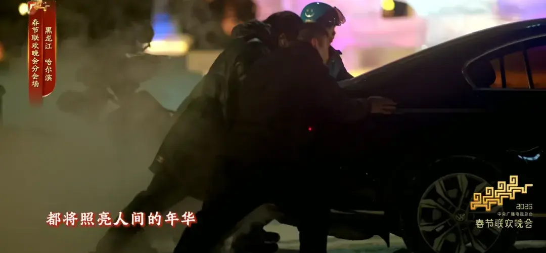 二是出现解救打滑的车辆、致敬街头的守护者,这是讲述冰天雪地和冰雪经济故事很容易忽略的一点。