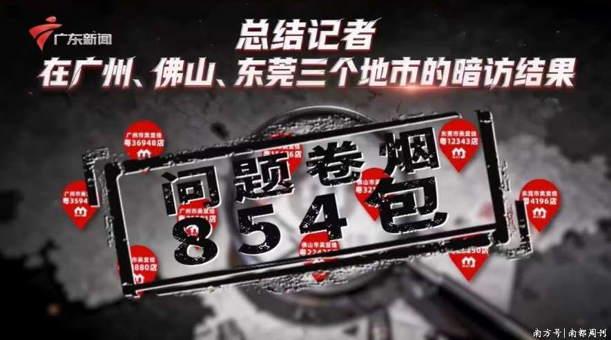 据《广东3·15晚会》消息,近日大量网友反映在美宜佳便利店买到了“假烟”,有的网友甚至直指美宜佳为“假烟聚集地”,戏称其有“自己的卷烟厂”。广东3·15晚会调查组在广州、佛山、东莞三个地市暗访,在10家美宜佳便利店均购买到了问题卷烟。从这10家美宜佳便利店中,烟草专卖局最少查出问题卷烟854包。调查组将从美宜佳便利店购买到的四款问题卷烟,送至第三方机构进行检测,结果显示,送检卷烟的实测主要烟气指标都存在问题,这意味着更高的致癌风险和更强的成瘾性,严重威胁消费者的健康。然而,在广州、佛山、东莞的烟草专卖局开展执法的若干天后,调查组又再次走访涉事门店,结果发现10家门店中,至少还有一半仍在售卖问题卷烟。